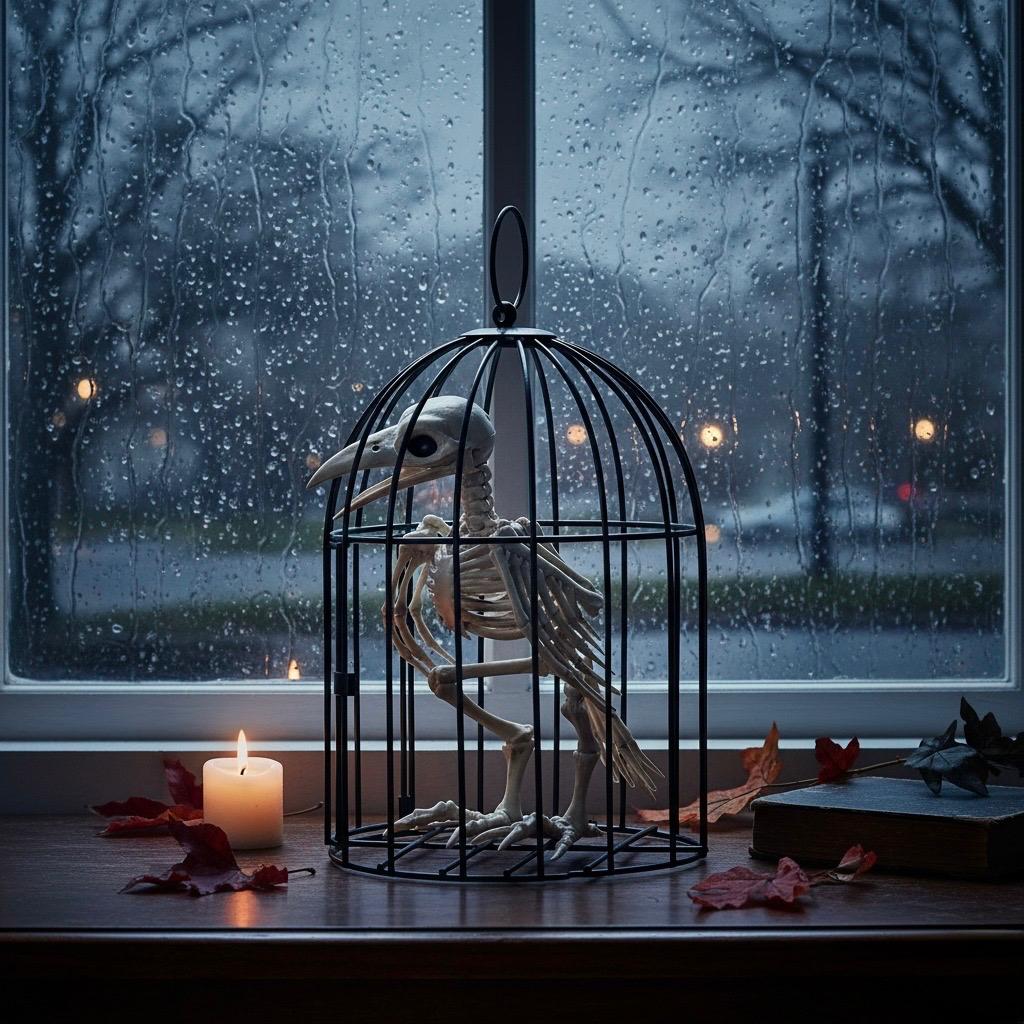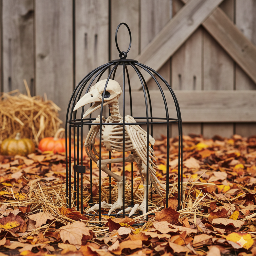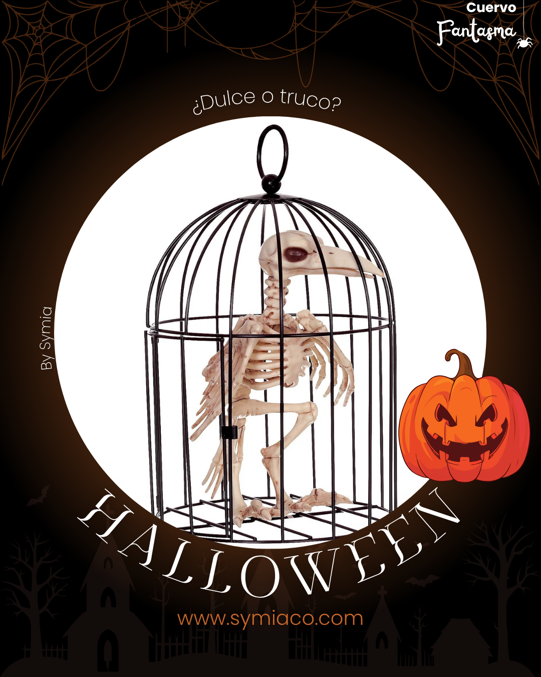 🎃 El Cuervo Esquelético en Jaula es el detalle aterrador que convertirá tu Halloween en una experiencia inolvidable.