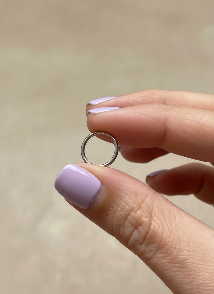 Un aro infinito ultradelgado diseñado para acompañarte todos los días con comodidad, ligereza y un brillo sutil que eleva cualquier look sin esfuerzo.
