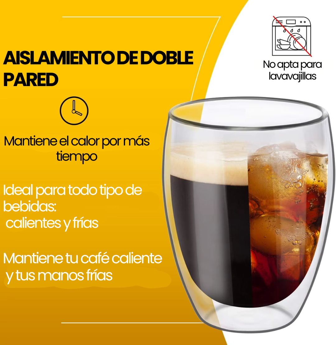Su doble pared no solo realza la estética, sino que también actúa como aislamiento térmico, evitando quemaduras y manteniendo tu café, té o infusión a la temperatura ideal por más tiempo. Perfecta para regalar a esa persona especial o para disfrutar en tus momentos favoritos.